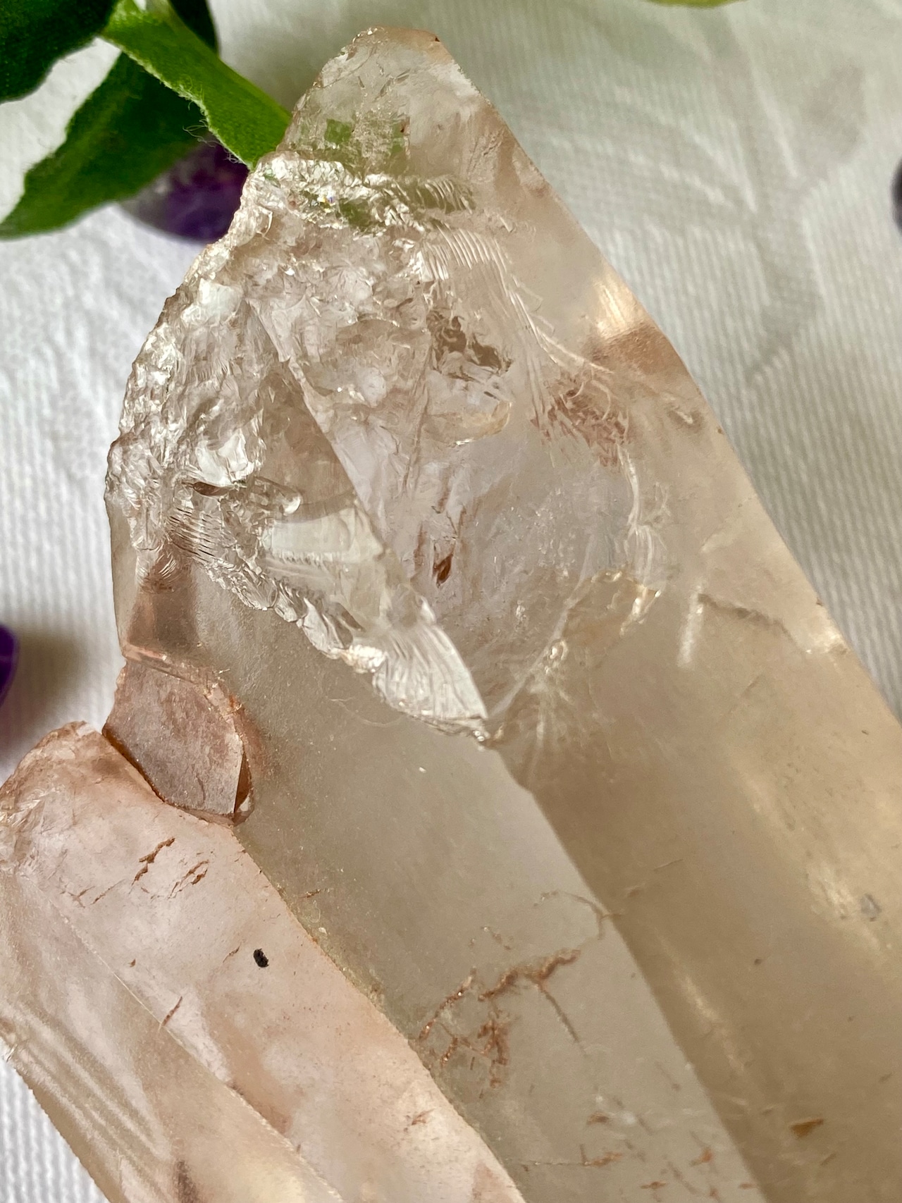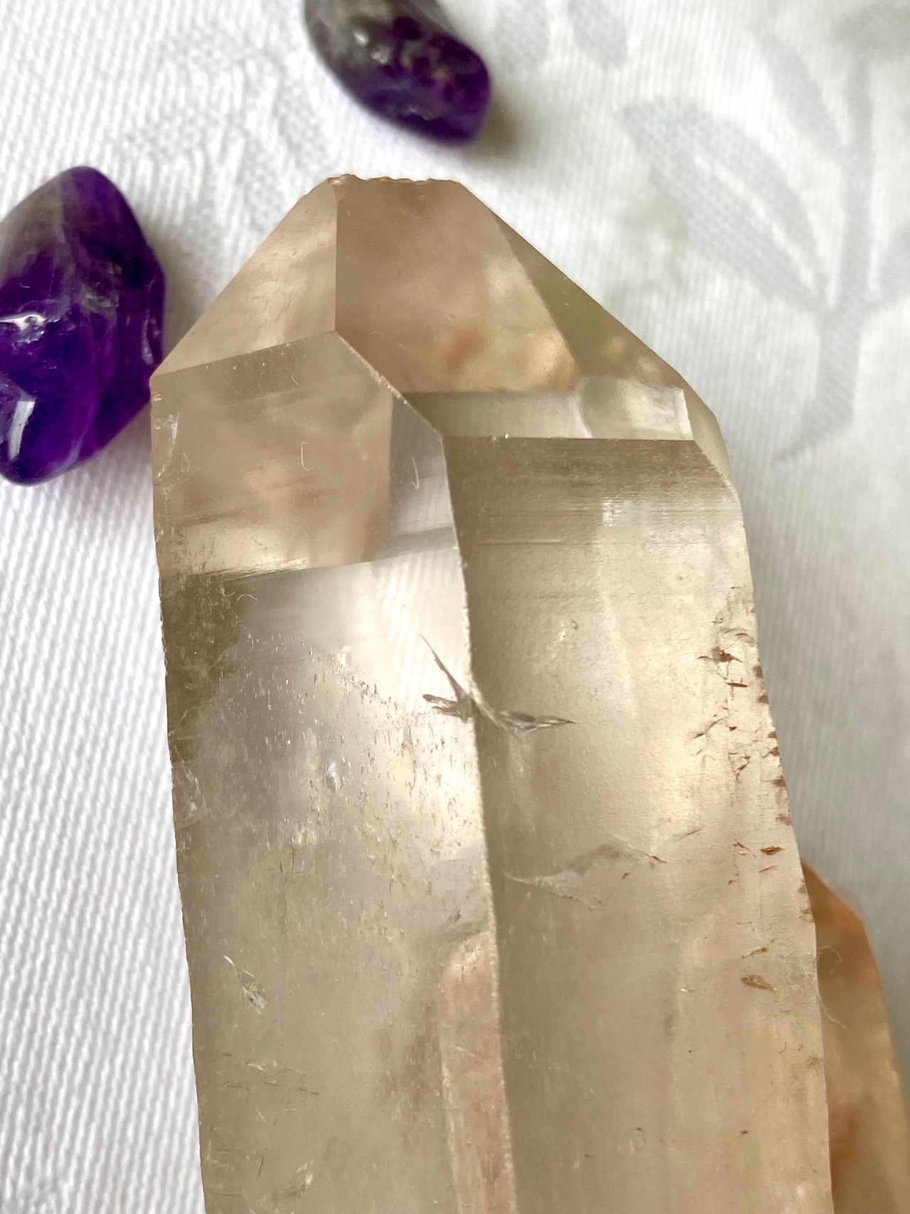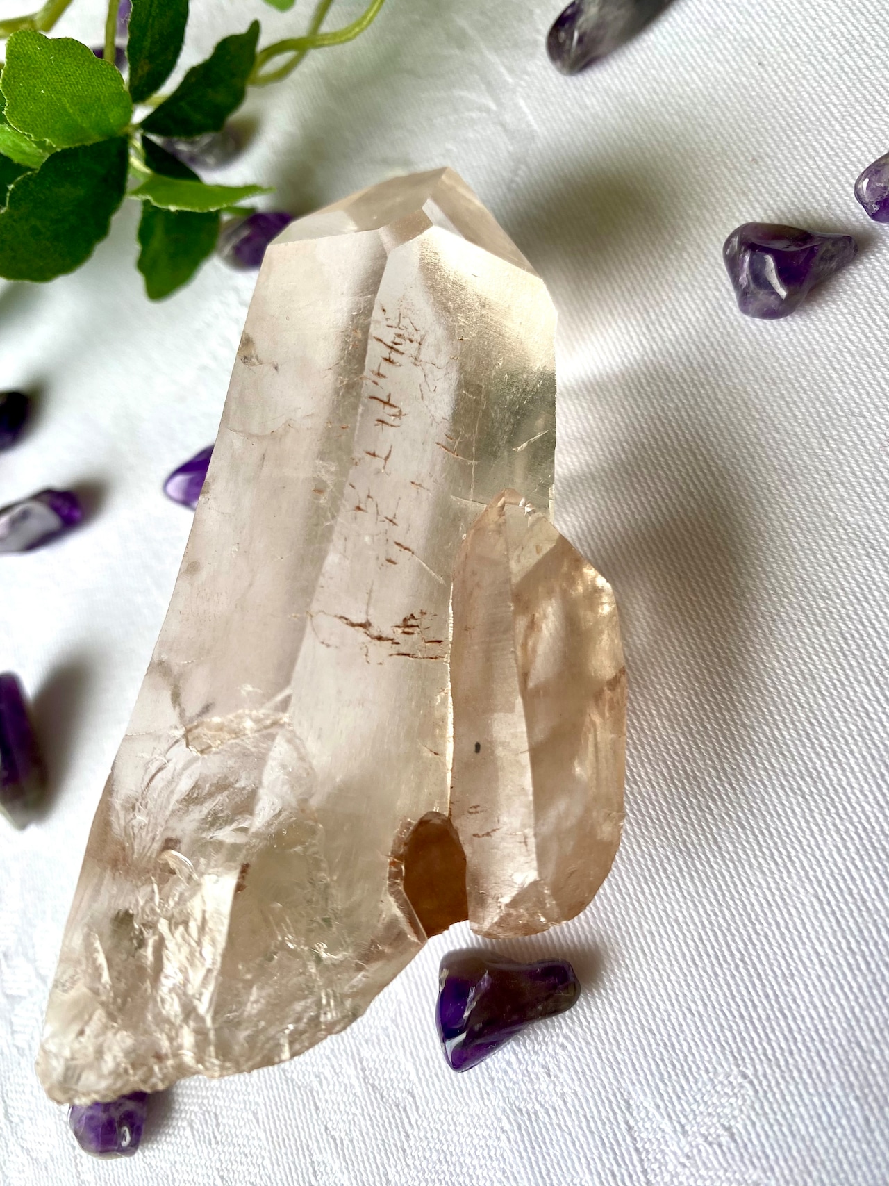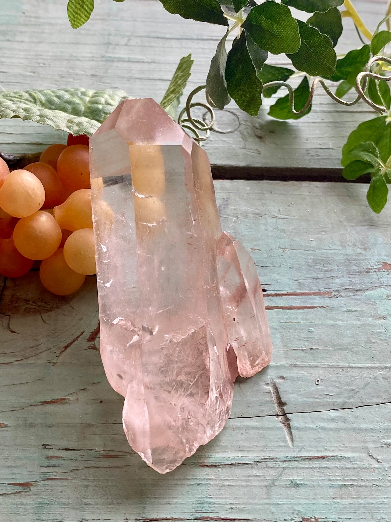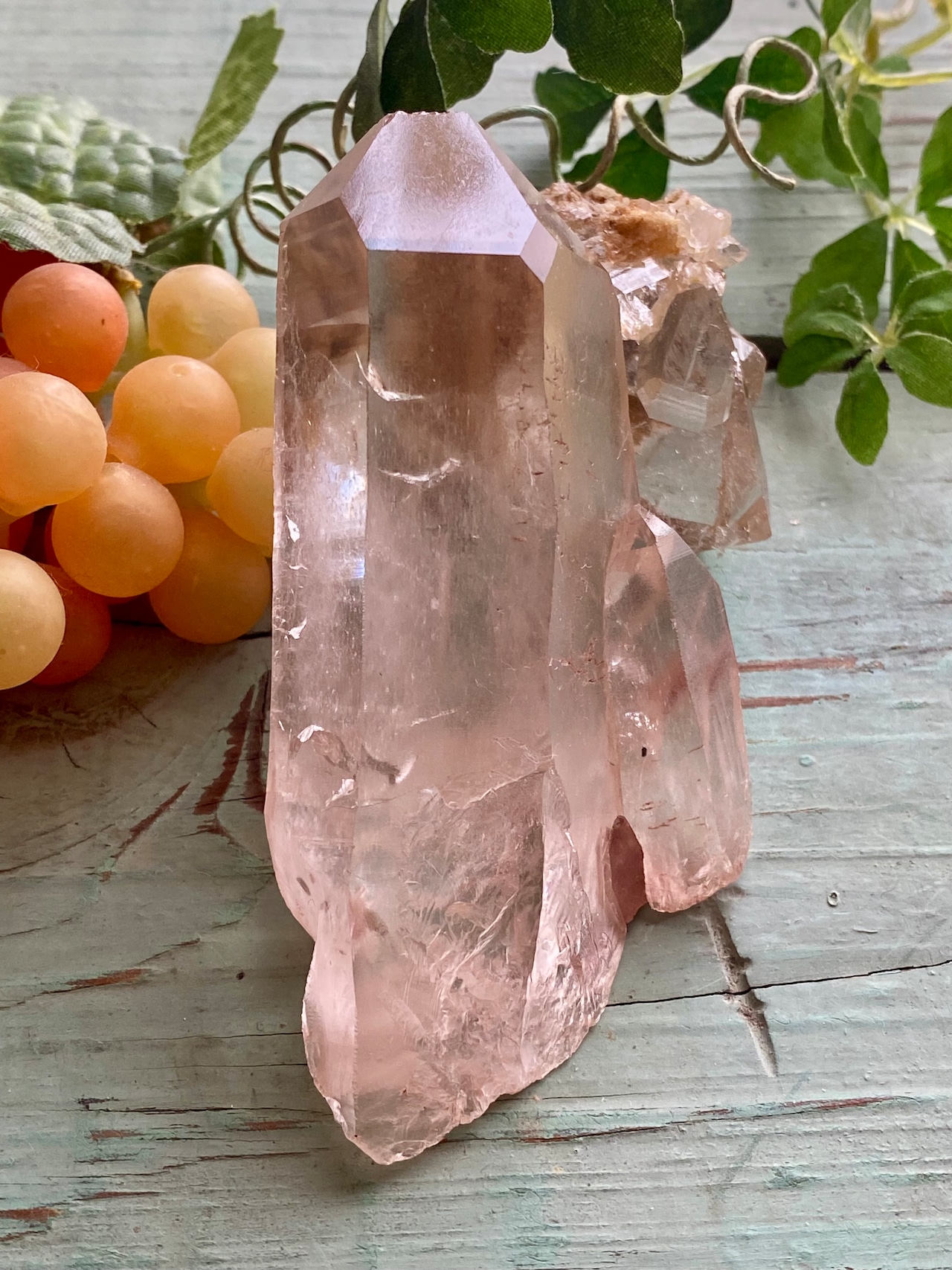 ポイントにそっと寄り添う小さなクォーツを伴うこの水晶は家族愛や夫婦愛を深めてくれるでしょう。