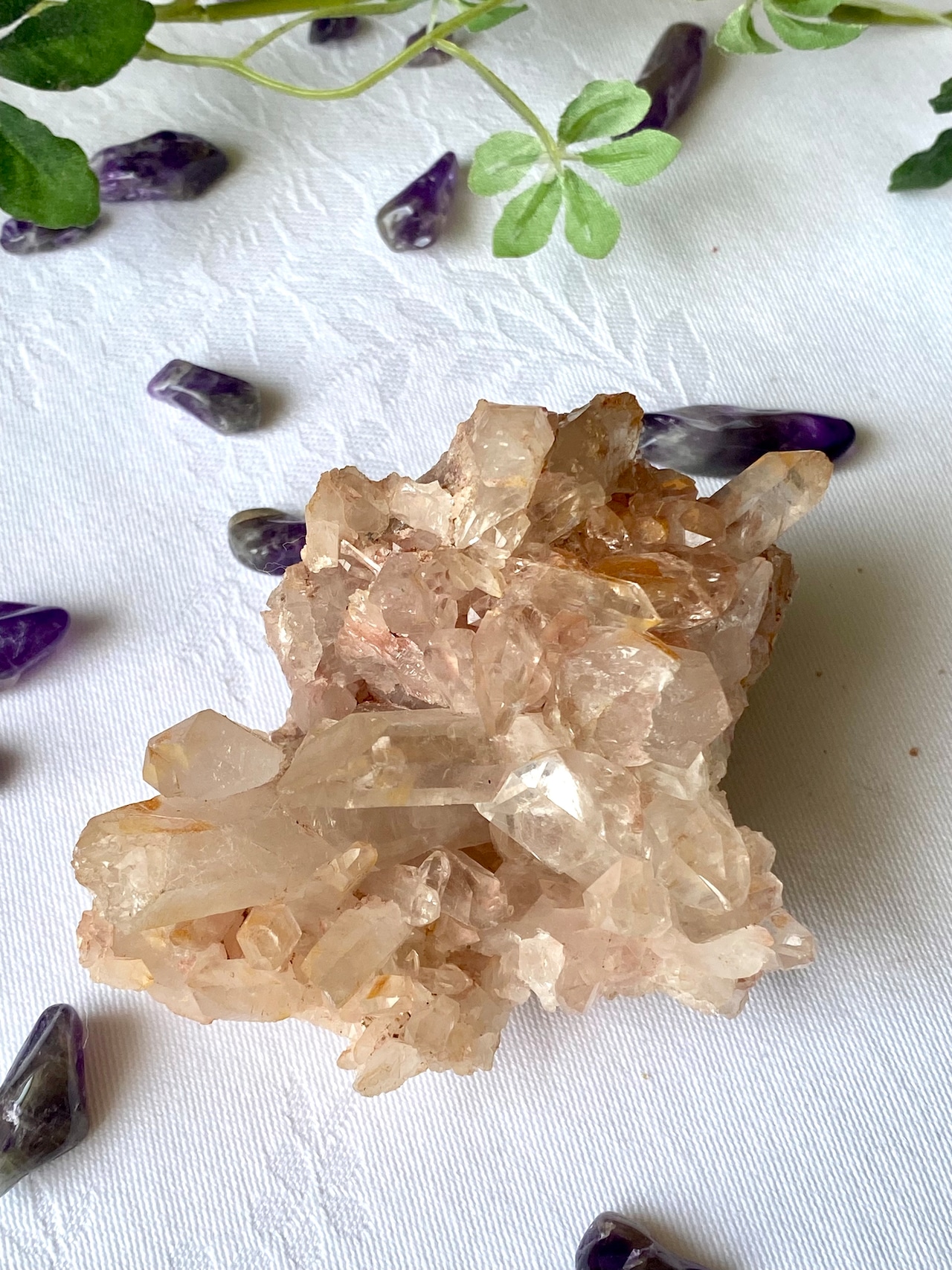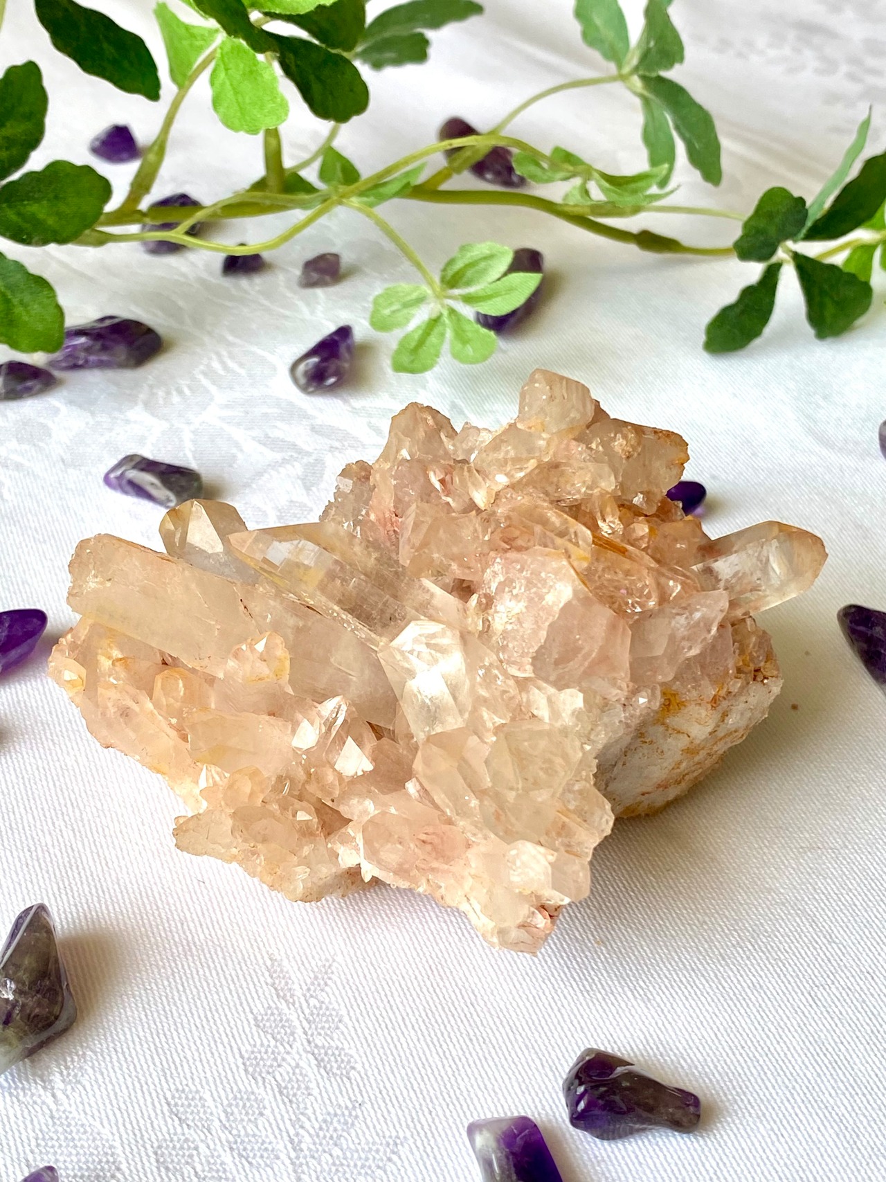 愛される力、自分を愛する力——どちらもそっと育ててくれるこのクラスターをそばに置けば、あなたの空間はまるで小さな聖域。