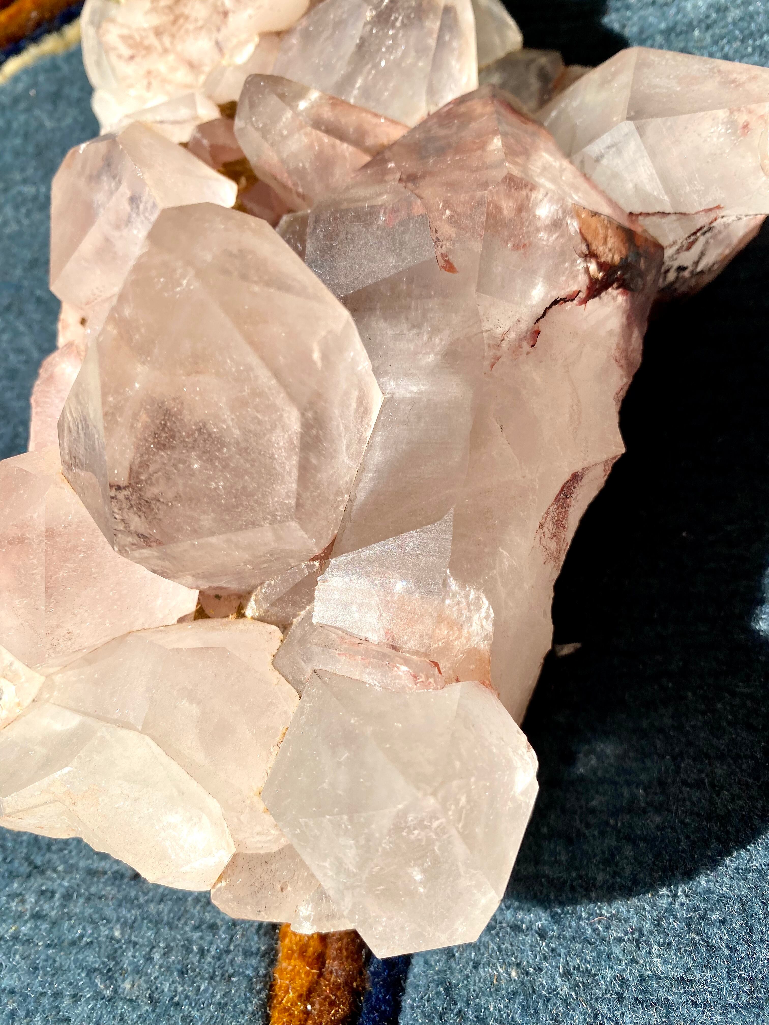 ・パールヴァティが住まうと言われる、パールヴァティ川の聖地マニカラン産の美しいクラスター。大きなスモーキーピンクのポイントが重なり合い、ヘマタイトの含有量が多い珍しいクリスタルです。女性の持つ慈愛を引き出し、女性と関係の深い血液の流れを良くする効果も期待できます。